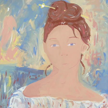 This is my attempt at impressionism. It was my first major painting I've done in a while. I had a hard time painting the face like Morisot did, however I think I did well overall. I enjoyed creating the background, as there wasn't a certain object I had to paint. I painted this using many loose brush strokes.
