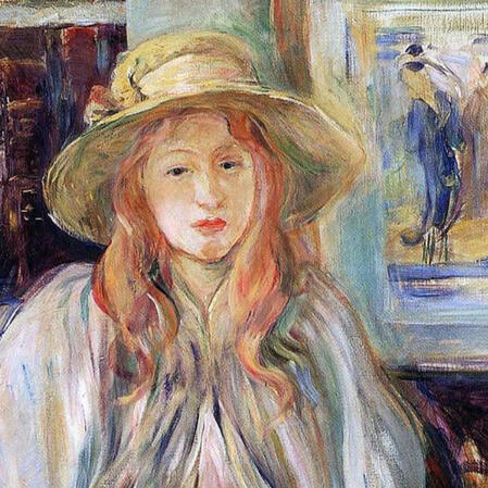 One figure she used often was of her daughter, Julie. Julie provided inspiration to Morisot, and also acted as her model. The painting below showcases a portrait of Julie, called "Julie Manet with a straw hat".